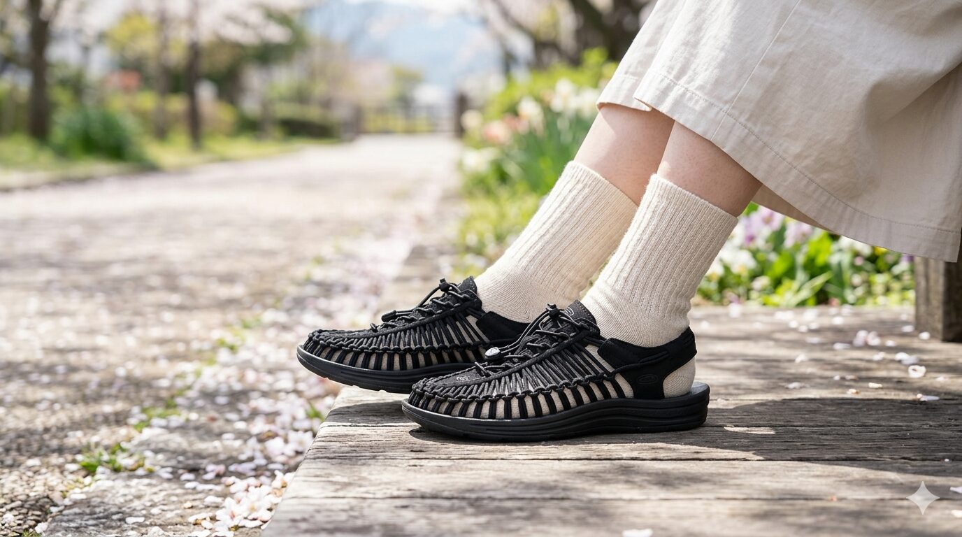 • 迷ったらKEEN「UNEEK」が4月のサンダルデビューに最適。華奢なデザインは「ダサい」可能性が高いので注意。