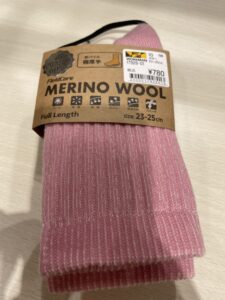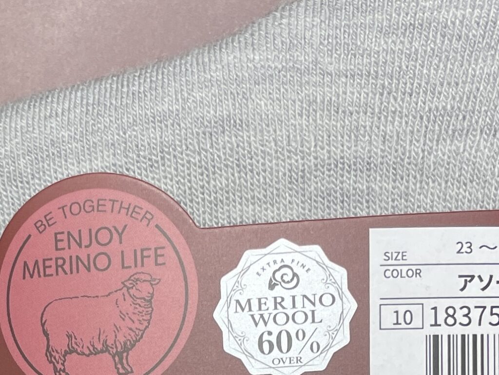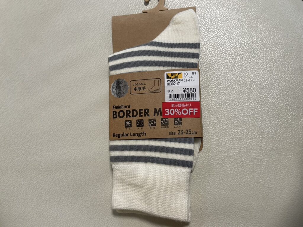 まず価格を見てください。メリノウール配合で定価580円(税込)です。 これだけでも十分安いのですが、、、実は私が訪れた店舗では、なんとここから「30%オフ」になっていました!(小声)